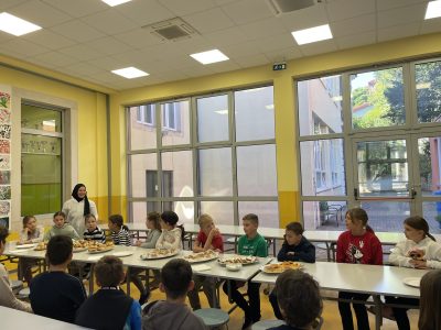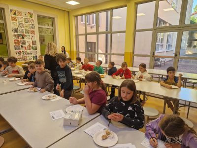 Degustaciju i prezentaciju zdravih obroka u blagovaonici škole pripremili su učenici 4.a i 4.b razreda sa svojim učiteljicama Karin Barbancich i Ivanom Ivković Božac. Učenici 4.b su nakon provedenog istraživanja što doručkuju njihovi vršnjaci diljem svijeta, predstavili nova saznanja te uredili razredni pano. Tradicionalni makedonski doručak predstavila je majka učenika 4.a razreda pripremom đevreka i mantije. Učenici su isprobali nove namirnice i jela te su ih nakon kušanja ocijenili i dali svoje stručno mišljenje.