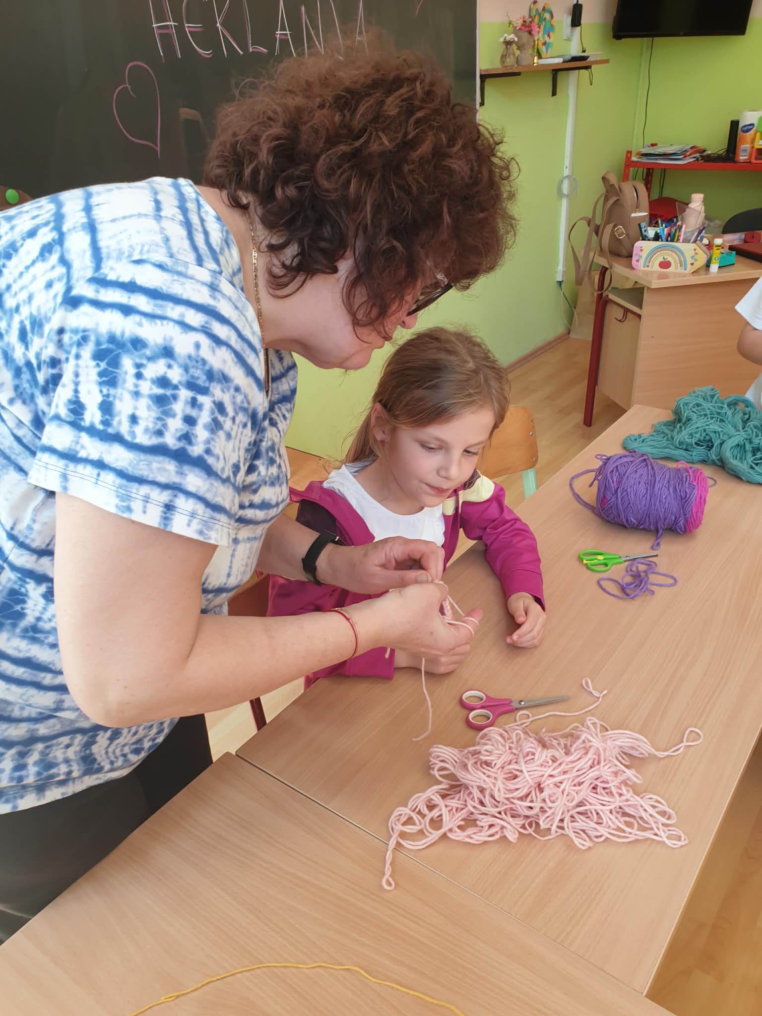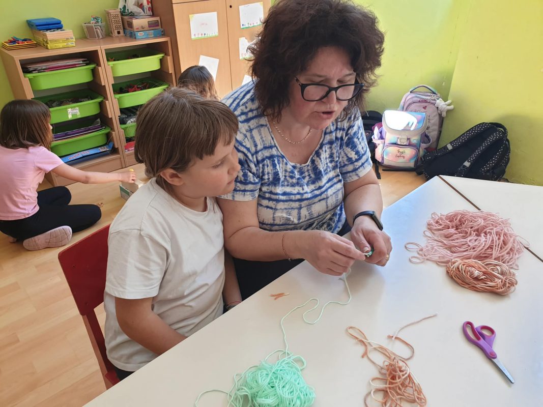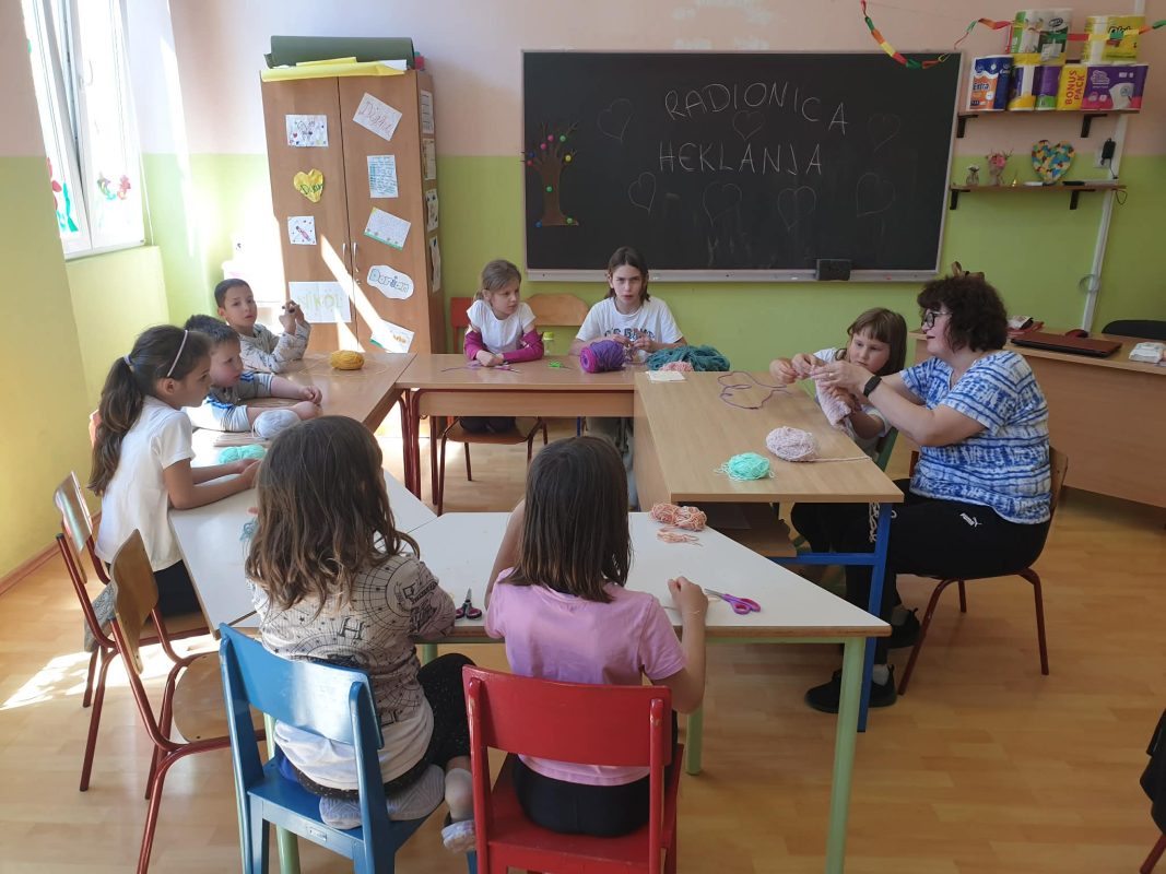 U petak, 17. travnja, odlučili smo organizirati Radionicu heklanja u PO Muntiću na prijedlog učenice Mare Ivančić (3.r.), koja se time bavi u slobodno vrijeme. U goste nam je došla Džemila Silić, nona učenice Ene Pletikos (1.r.), koja nam je odlučila pokazati osnove HEKLANJA. Heklanje ili kukičanje je vještina izrade tkanine provlačenjem petlji vune ili konca pomoću jedne kuke. Za razliku od pletenja, heklanje stvara čvršći i gušći materijal, što ga čini idealnim za izradu košara, torbi i igračaka. Svi smo se okušali u tome uz pomoć none Džemile i naše učenice Mare. Bilo nam je zanimljivo i zabavno isprobati hobi kojim su se nekada zanimale i pomoću heklanja izrađivale razne zanimljive stvari naše none, bake, babe… Učiteljica Dijana Biletić